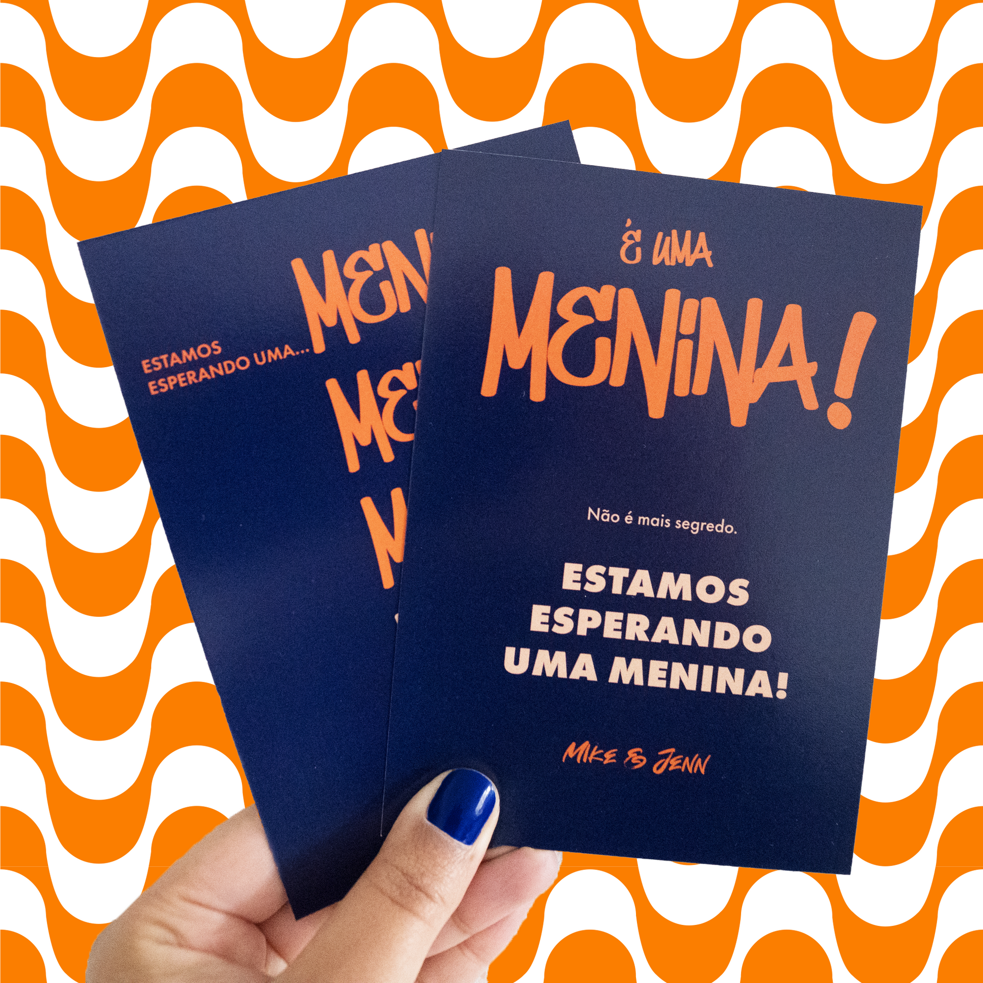 Personalisierbare Karte zur Geschlechtsverkündung des Babys.
